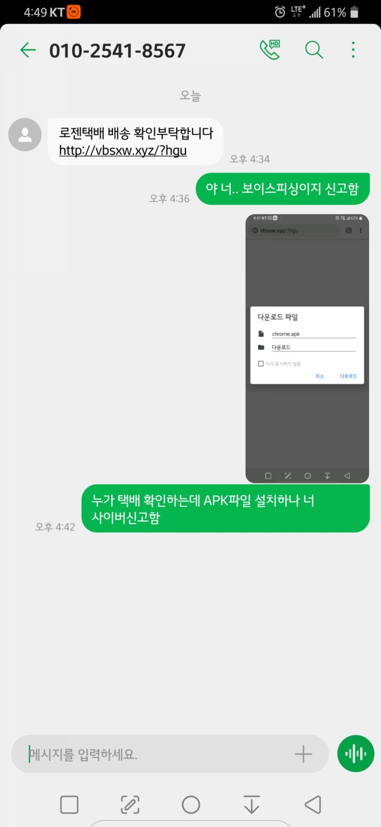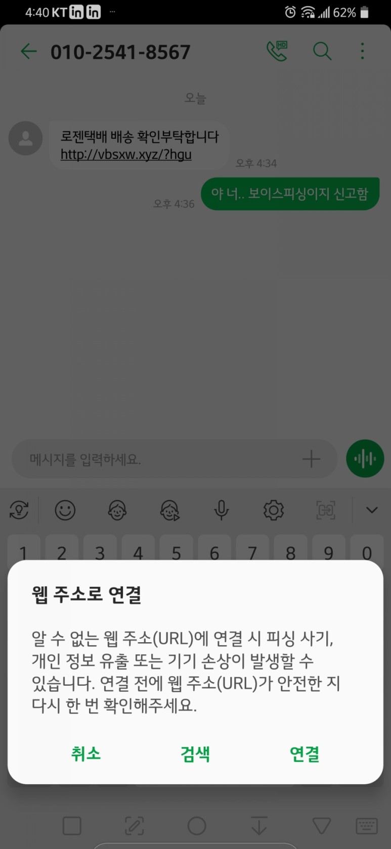 위 내용으로 문자한통을 받았습니다