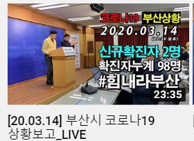 | 부산 유튜브 붓싼뉴스 20. 03. 16(월) 부산시 코로나19 상황보고 부산시청 기자회견장 (1) | 2020.03.16 |
