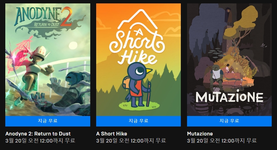한시적 무료게임 3종 (~3.20)