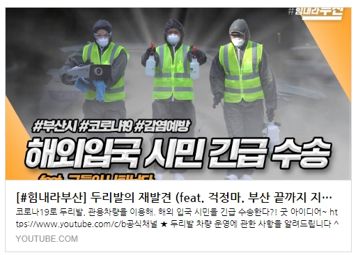 | 부산시 B공식채널 힘내라부산 이들이 활짝 웃는 이유 (feat. 마스크로 대동단결) (0) | 2020.04.03 |