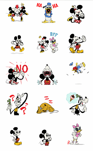 Disney Stickers: Mickey & Friends Oh boy! Add classic fun to your messages with this Mickey & Friends sticker pack that includes iconic characters like Mickey, Minnie, and Donald. Express yourself in new ways with dynamic and animated Disney Stickers you c