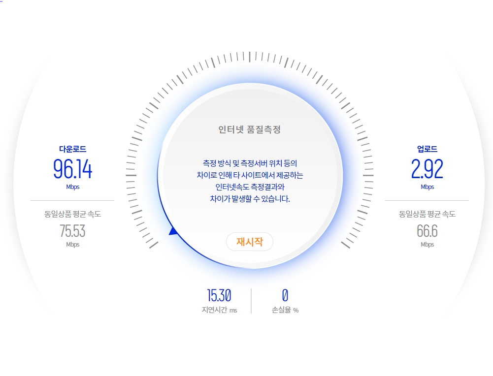 인터넷 다운로드와 업로드 속도가 이렇게나
