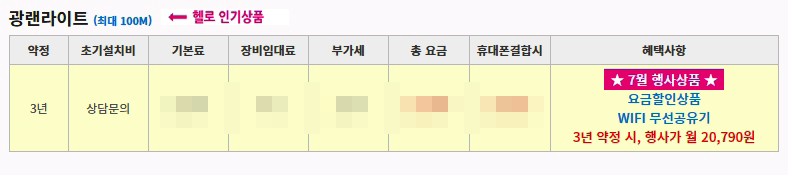 헬로 인기상품 광랜라이트 최대 100메가 인터넷요금제