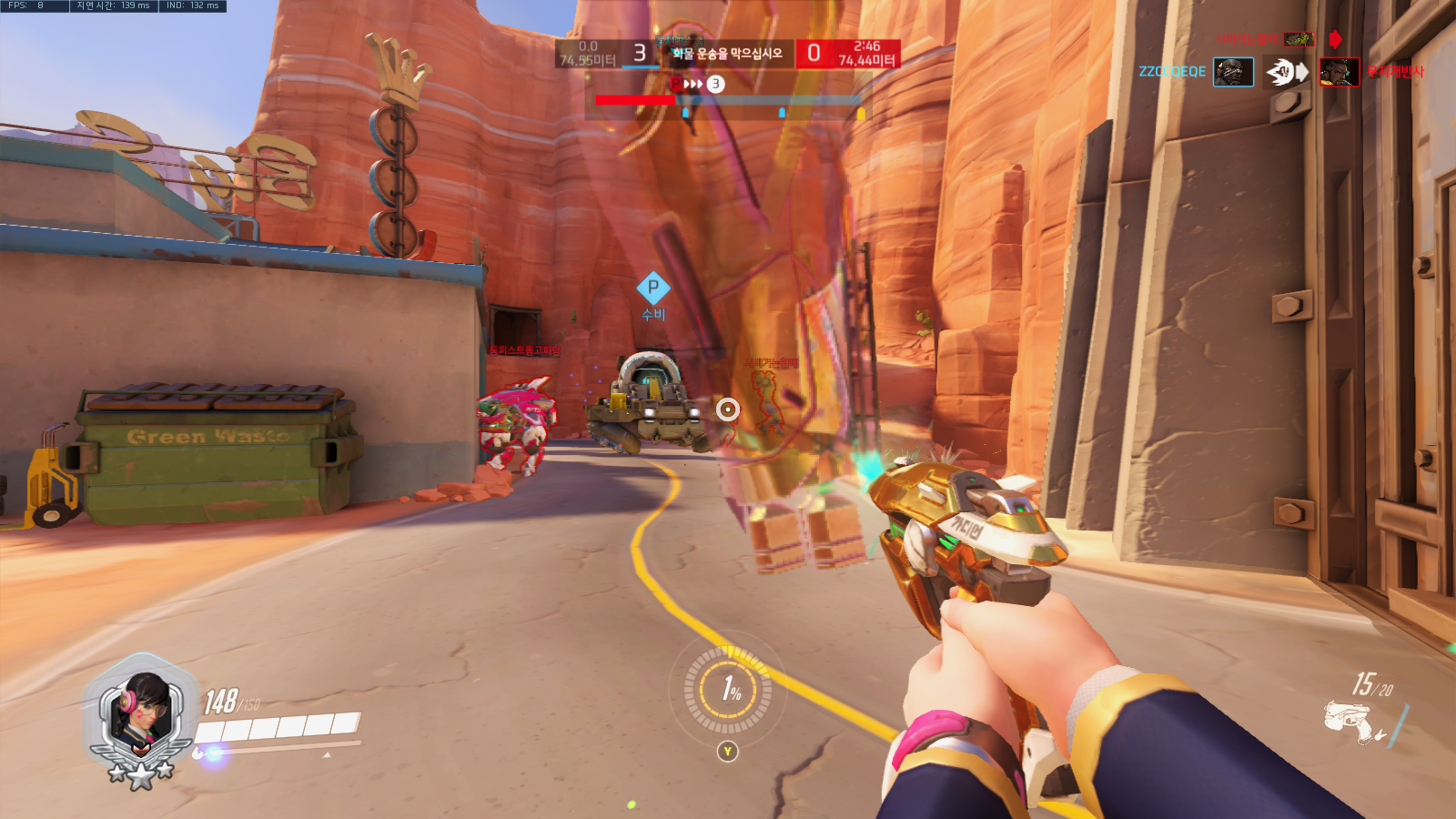 (오버워치 렉 걸리는 원인은 비동기 인터넷 사용 / 가장 좋은 핑 40~50 수준)