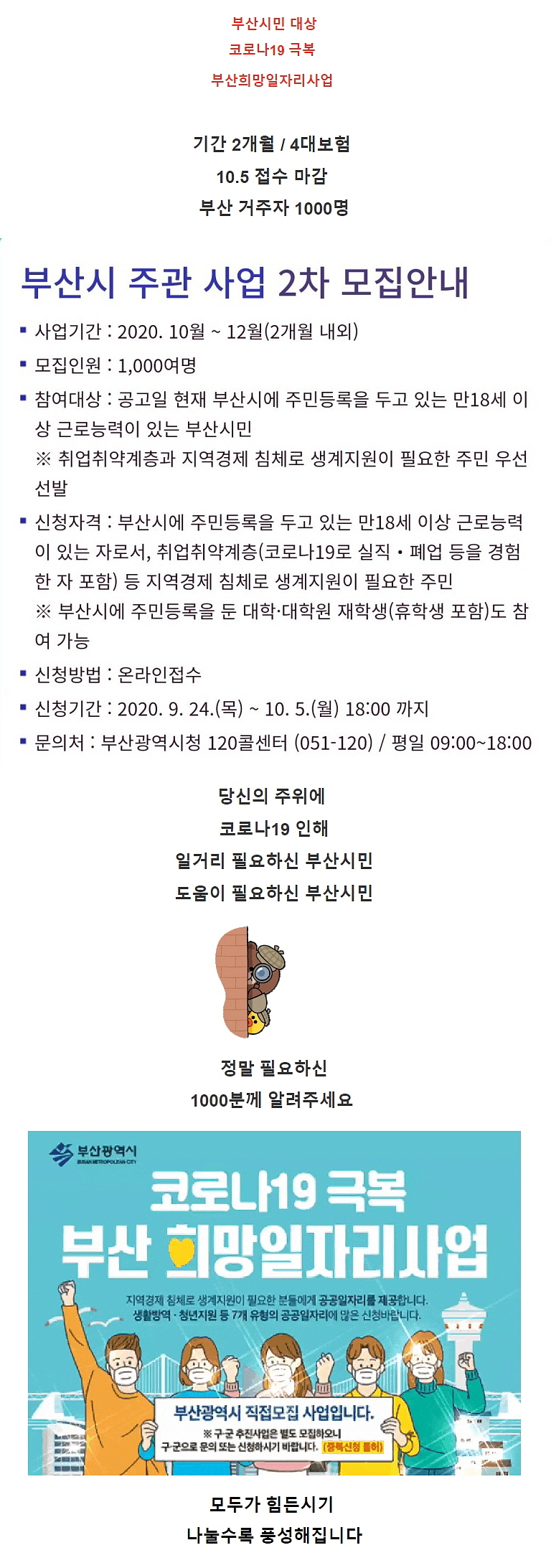 부산시서포터즈 유튜브프렌즈 강월드 부산일자리정보 부산시민 코로나19 극복 부산 희망일자리�