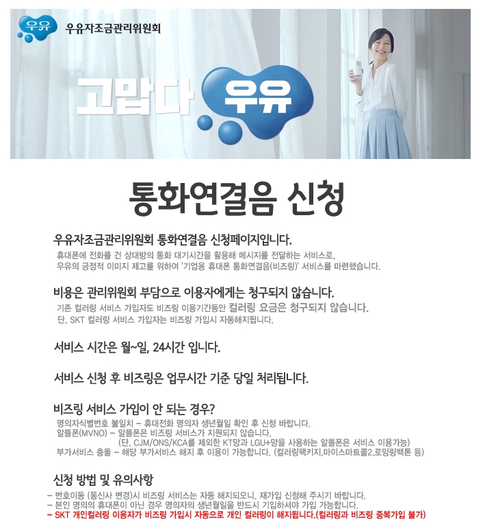 #스마트폰연결음무료 #1년무료 #우유비즈링