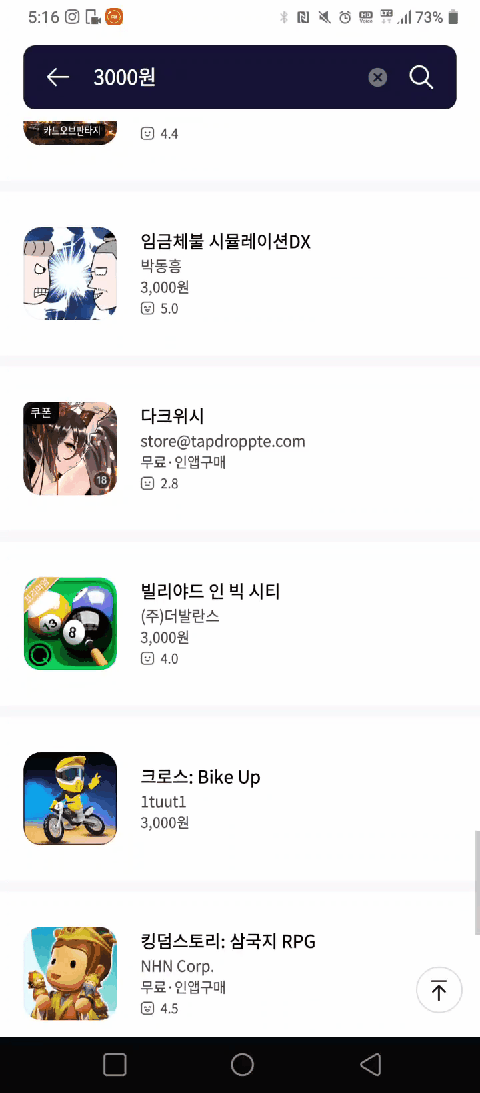 3천원 원스토어 유료게임 구매 후