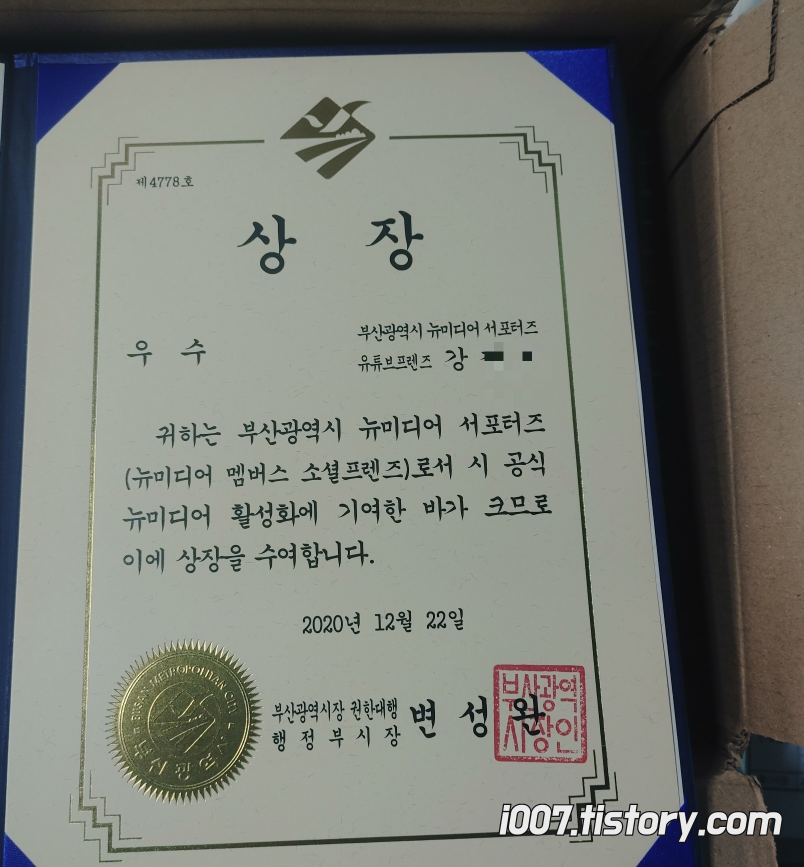 | 제1회 부산광역시 유튜브 콘텐츠 공모전 영상 수상 말숙이와 랜선여행 in 부산 (0) | 2020.12.30 |
