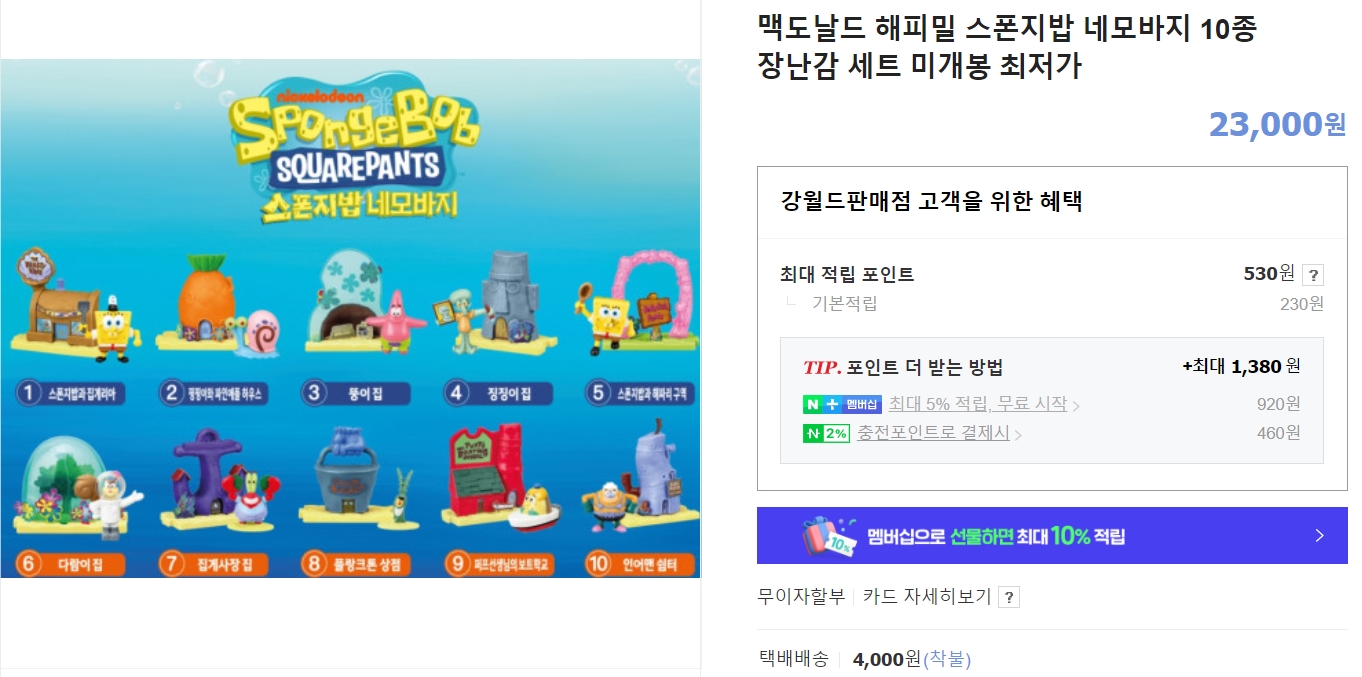 맥도날드 해피밀 스폰지밥 네모바지 10종 장난감 세트 미개봉 최저가 : 강월드판매점