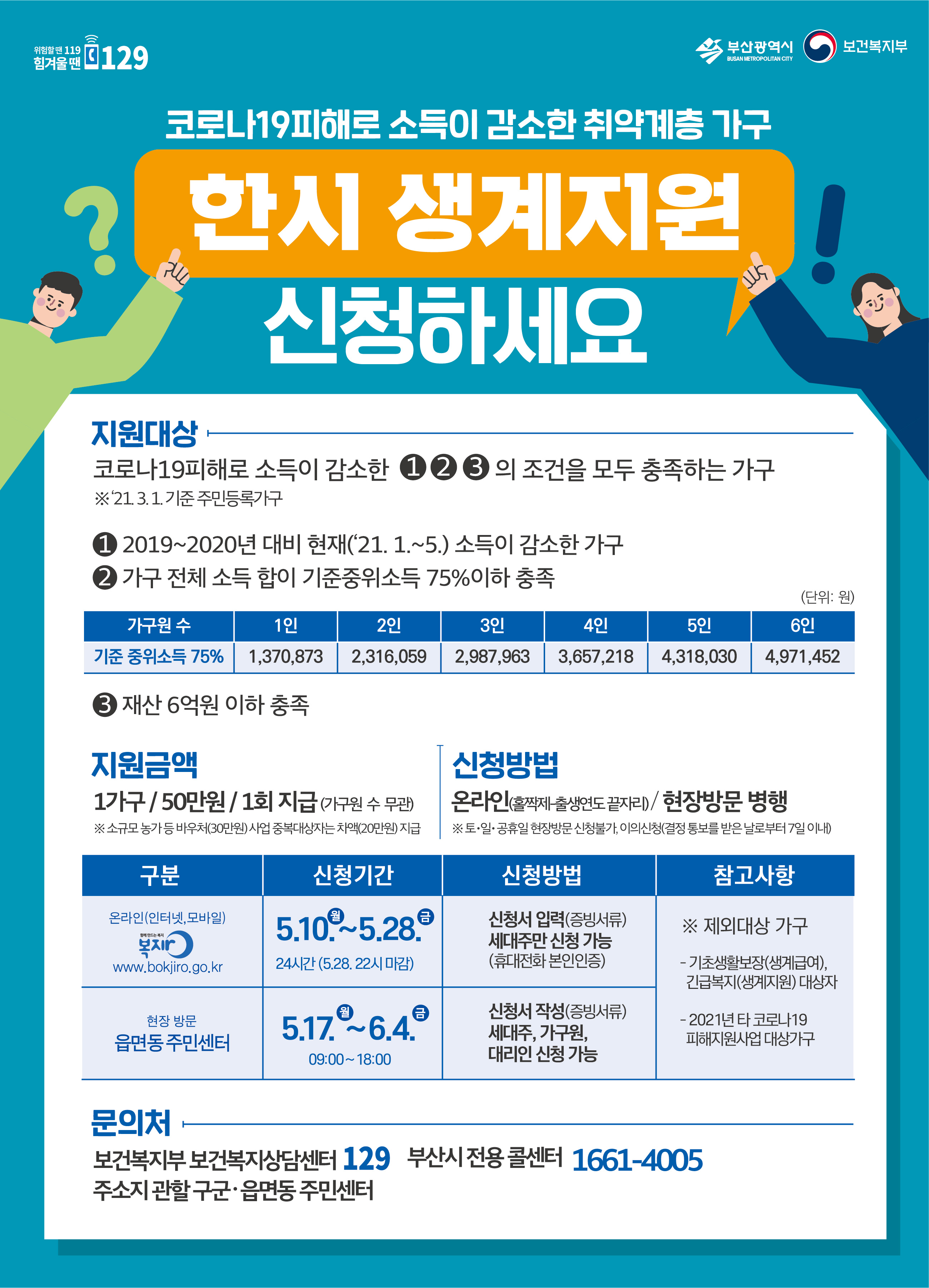 한시생계비 50만원 1회 지원