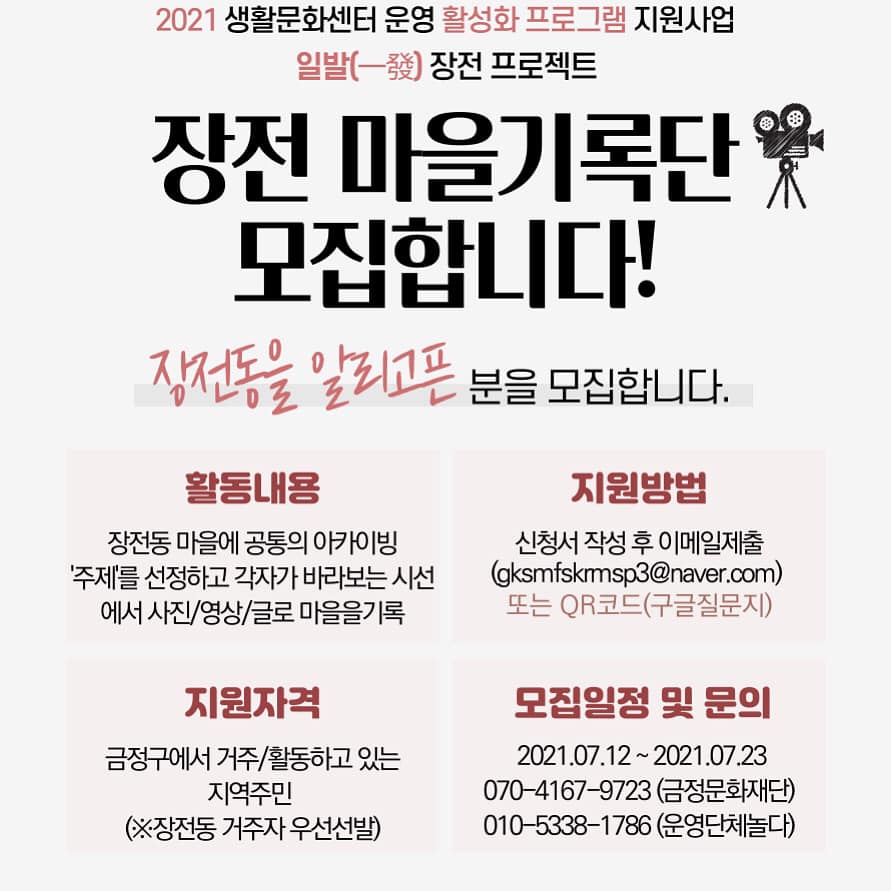 부산 금정구 장전 마을기록단 모집중 사진 영상 스마트폰 활용교육및 참가비 무료 (~7.23)