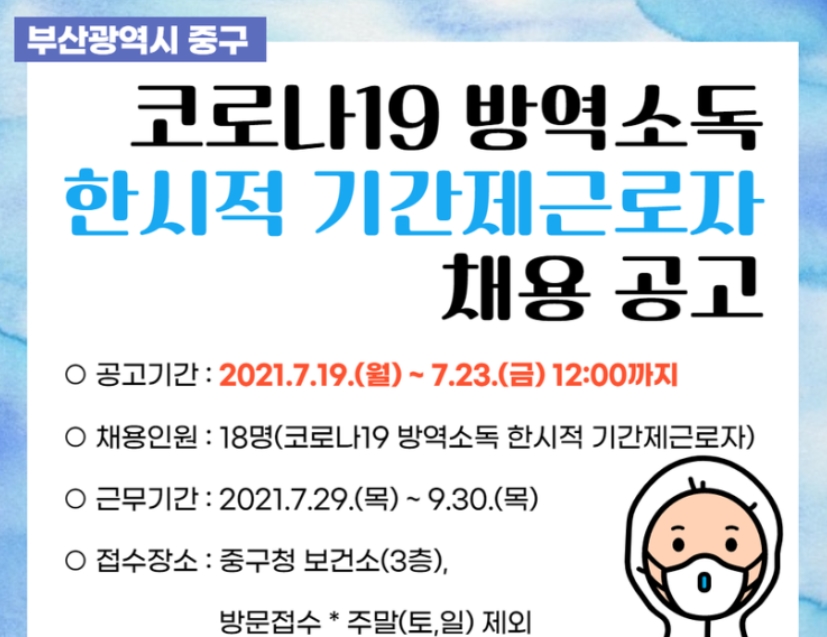 #부산 #부산중구 #기간제 #방역소독 #기간제근로자 2021년 코로나19 방역소독 부산 중구보건소 18명 한시적...