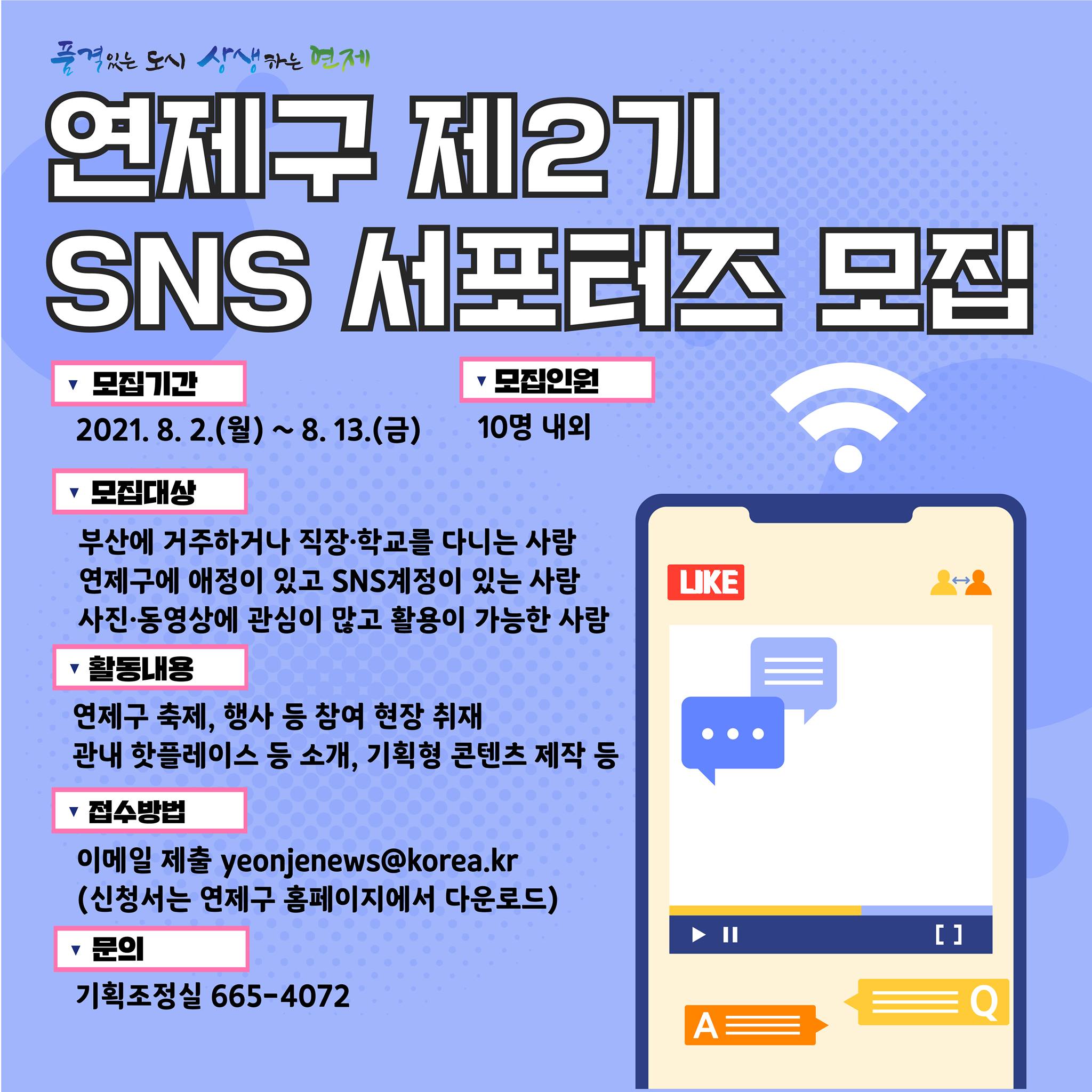 21' 부산 연제구 제2기 SNS 서포터즈 모집안내 원고료지급 구정참여기회제공 (~8.13 마감)