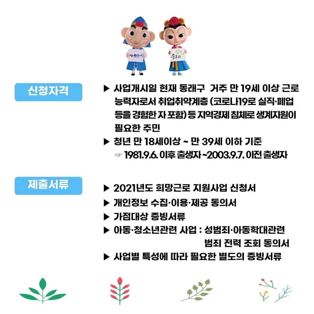 2021년 부산 동래구 2차 희망근로 지원사업 안내 청년16명 일반19명 (21.8.17~8.21마감)